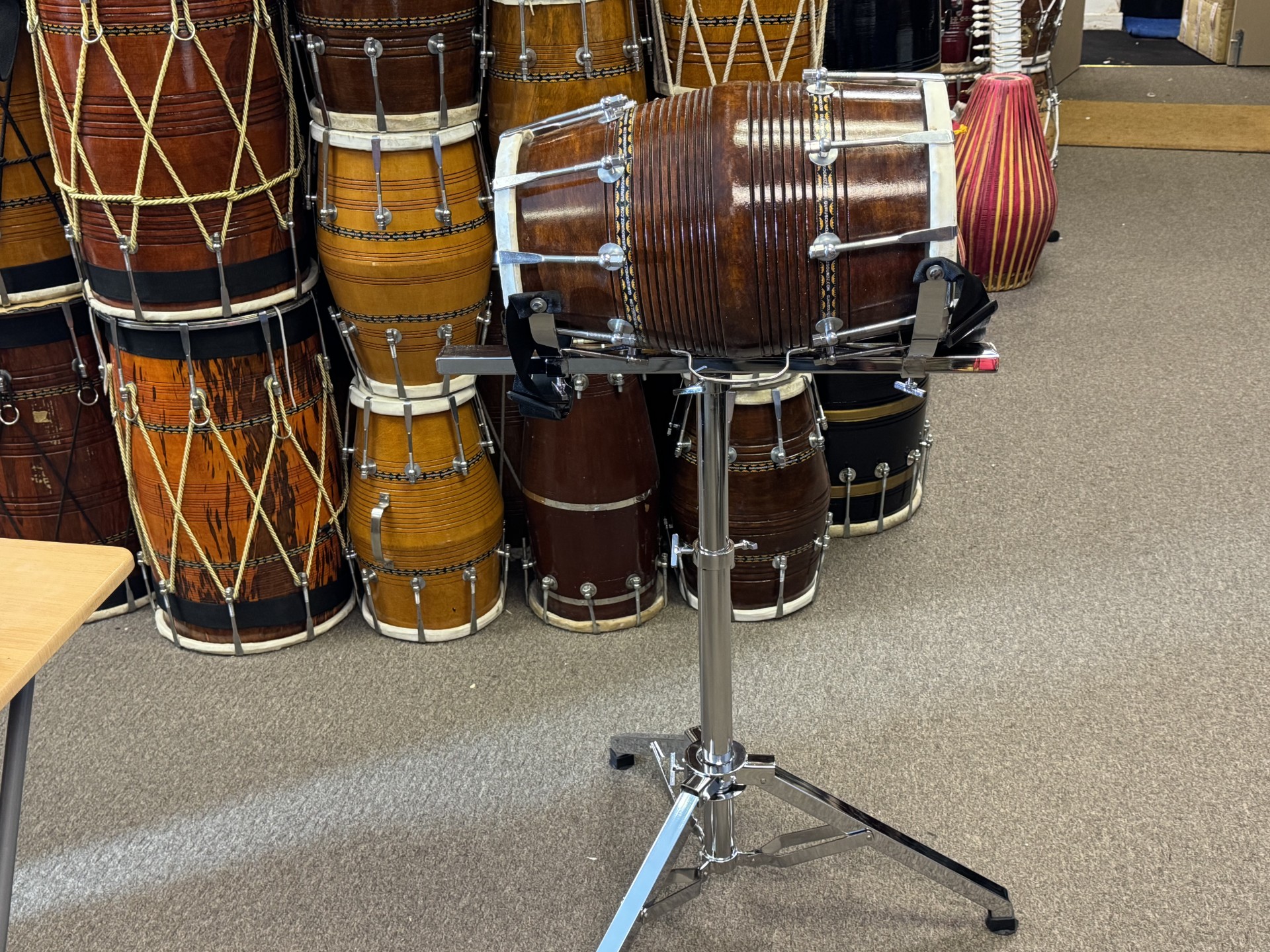 Home Product Dholak & Bollywood Instruments Dholak/ Mridungam/ Naal, Khol Premium Stand Dholak/ Mridungam/ Naal, Khol Premium Stand Description Dholak/ Mridungam/ Naal, Khol Premium Heavy Duty Stand. Related Products Dholak & Bollywood Instruments Guru Soundz Gold Designer Exclusive Dholak This Exclusive dholak is the one for all world class musicians. High quality skins. Complimentary gig bag. £199 Add to cart Bengali Instruments, Bhangra Dhol Premium Dhol/Khol Adjustable stand. This premium Dhol/Khol stand can be used for any musicians. £199 Add to cart Dholak & Bollywood Instruments Baby Dholak This is the fun dholak for children that gives original soundz,different colours available. £25 Add to cart Bengali Instruments Ektara Small A very small size tuned Ektara which is a very popular instrument in the world of Baul (folk) music world. £30 Add to cart Bengali Instruments Professional Tuned Full Size Ektara From Bengal This Professional concert ektara (1 string) instrument is a full size model. Used by many folk artists worldwide. £50 Add to cart South Indian Instruments Mridangam Head All sizes available. £50 Add to cart £165 Dholak/ Mridungam/ Naal, Khol Premium Stand quantity Add to cart Categories: Bengali Instruments, Dholak & Bollywood Instruments, Exclusive Products, Percussion, South Indian Instruments Personal contact +02085944040 info@gurusoundz.com Contact Us Showroom Address