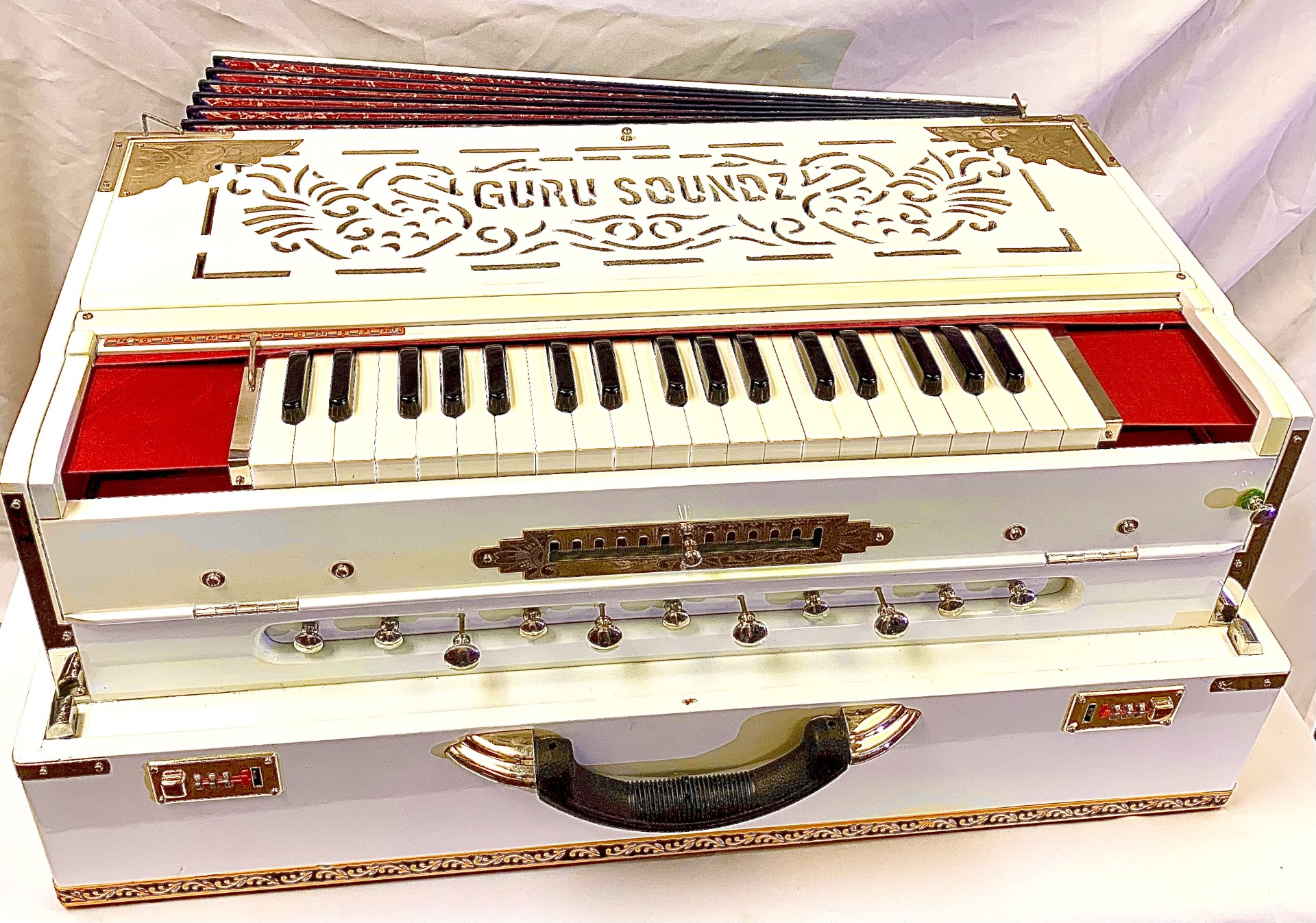 Guru Soundz White Exclusive orchestra Concert 4set reeds 13 Scale Changer Harmonium is a unique harmonium of its kind. Orchestral quality- long-sustained sound, and smooth touch keys. Made from fine quality teak wood with marvellous workmanship this is the harmonium to be played by all exclusive musicians.